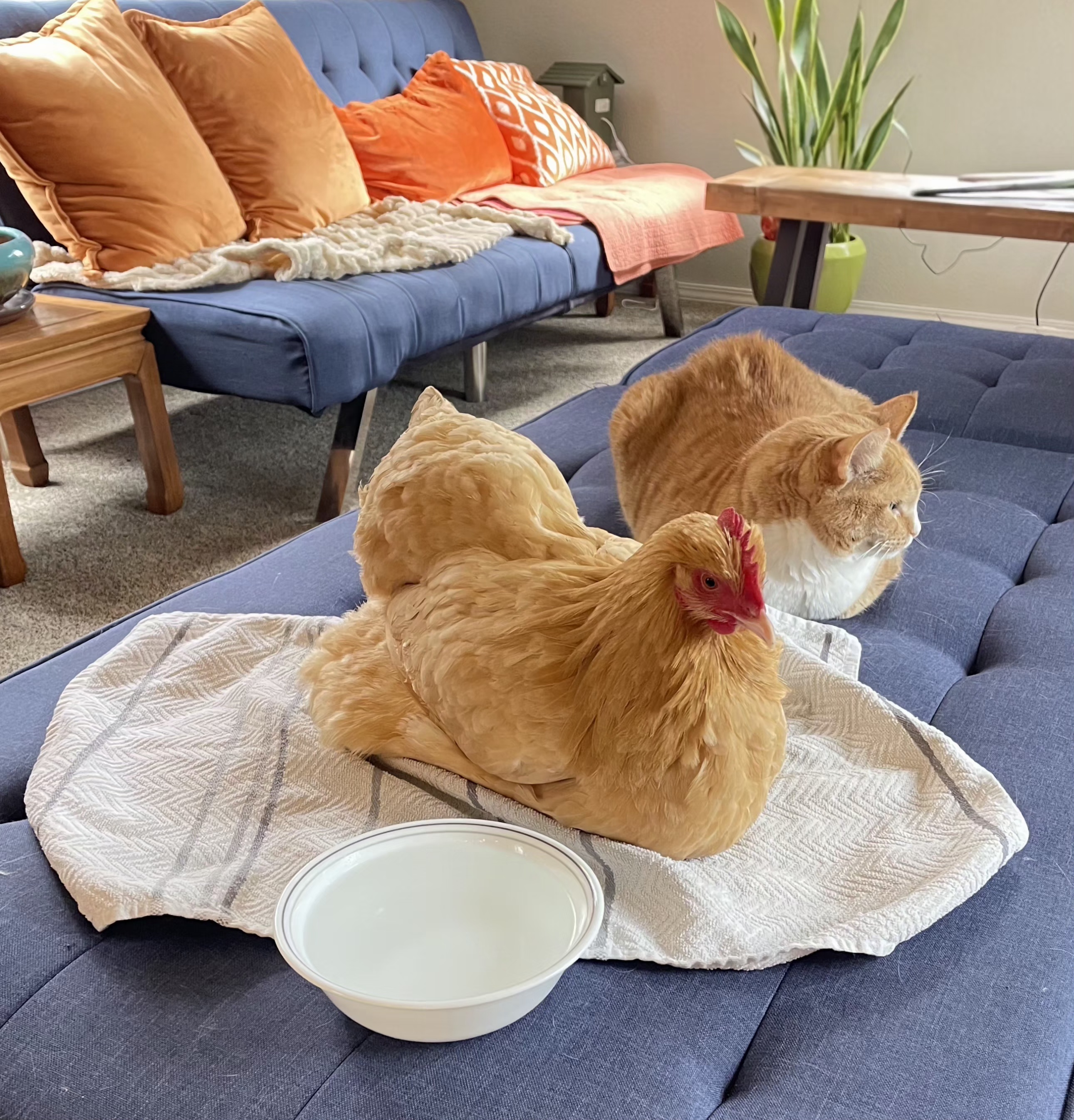 The wife had to watch Peep, one of her "ladies", slowly pass away from an impacted crop this week. But we brought her inside and gave her some palliative care (with help from our orange bois) for her last 2 days before she left to meet the great Colonel in the sky.
