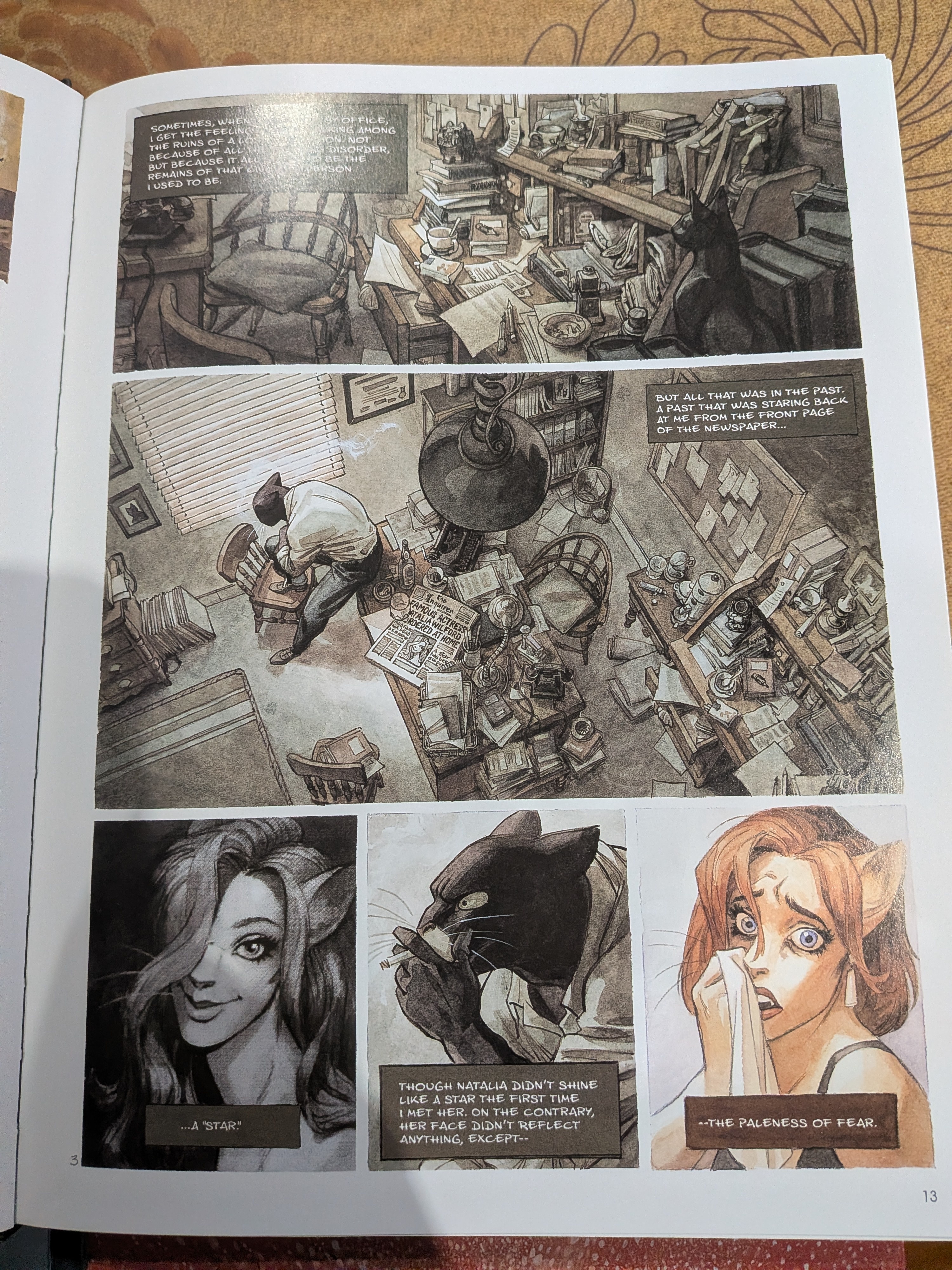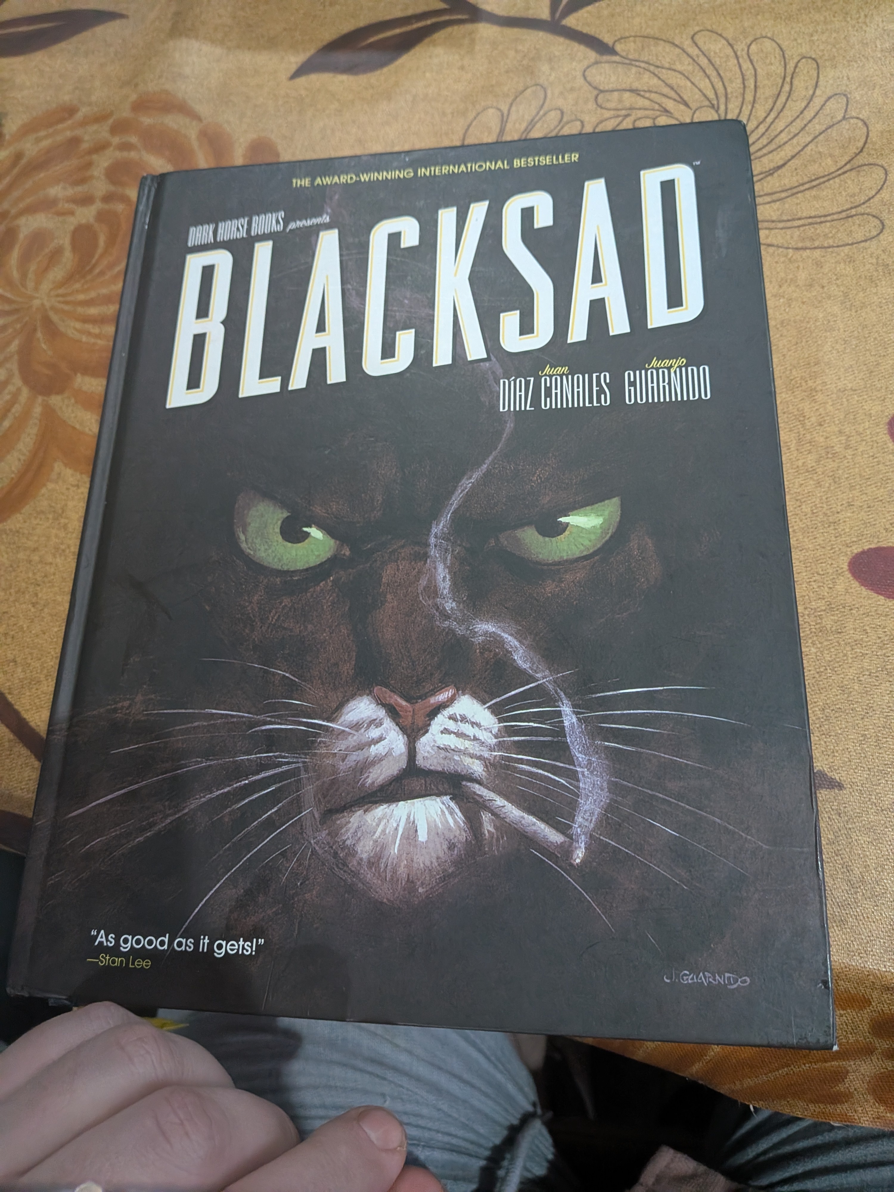 Blacksad an antromorphic detective comic set in the 1950s. Beautiful artwork and solid stories. I was actually surprised how much I enjoyed it. Stories are fantastic with great characters, fight scenes and depth that the antromorphic nature of it might imply