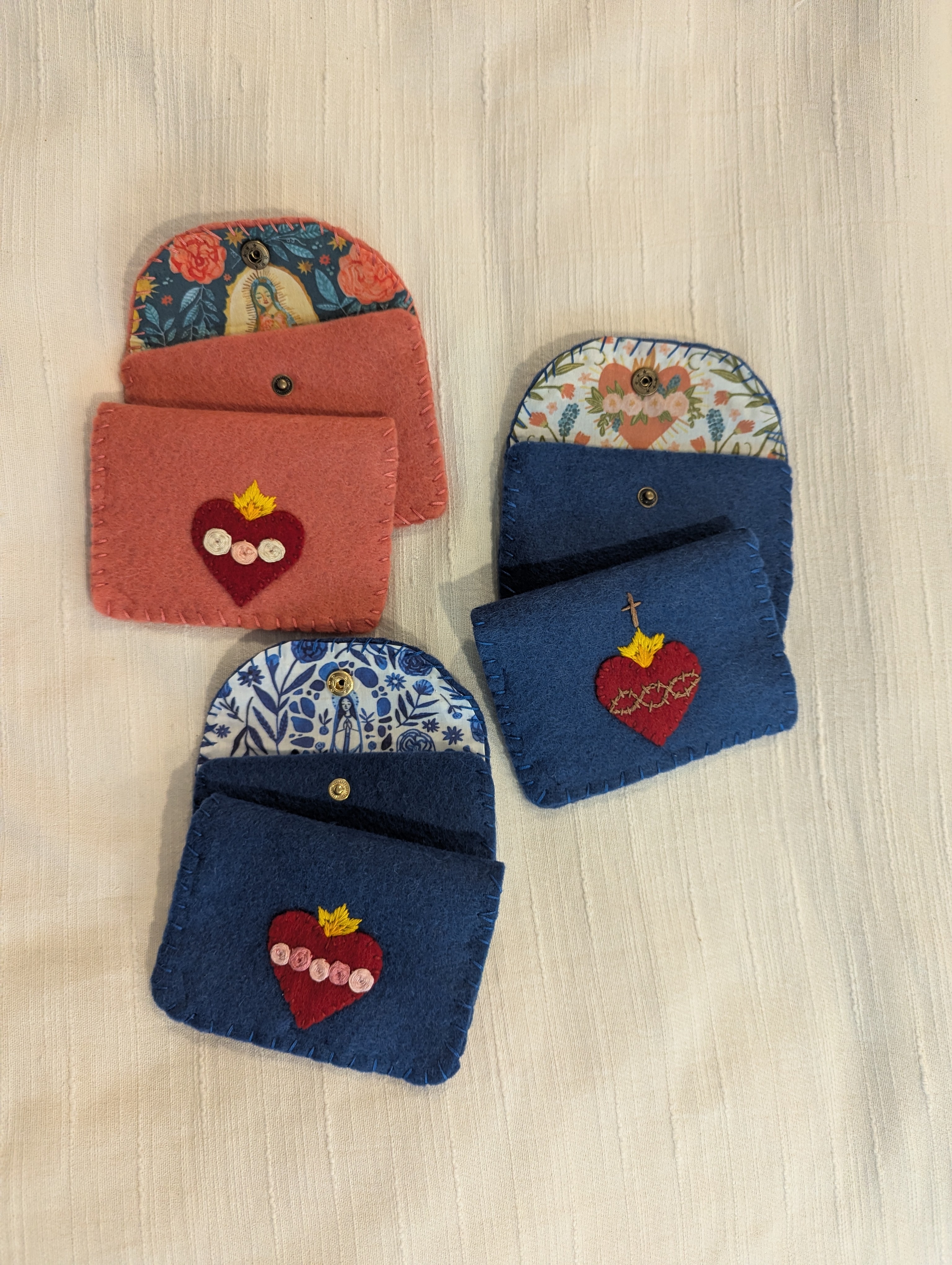 I made these embroidered rosary pouches as gifts for my OCIA table - one of several Lent projects while I abstained from social media. Last year my diocese had a record number of people join the church and this year we doubled it, with 67 from my parish alone.