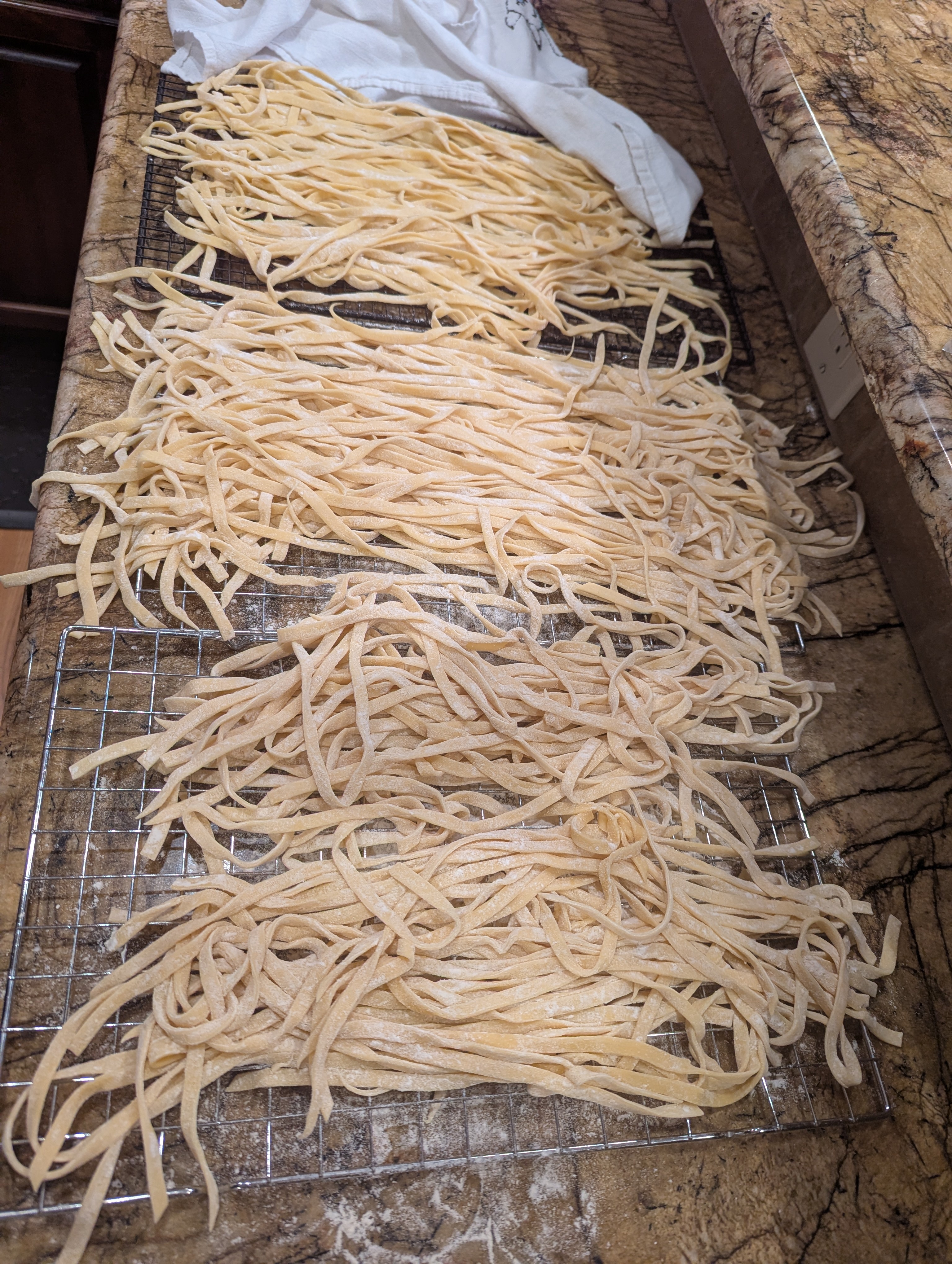 I was gifted a pasta attachment for my KitchenAid mixer and finally put it to the test last night with a batch of fettuccine. It was SO good.