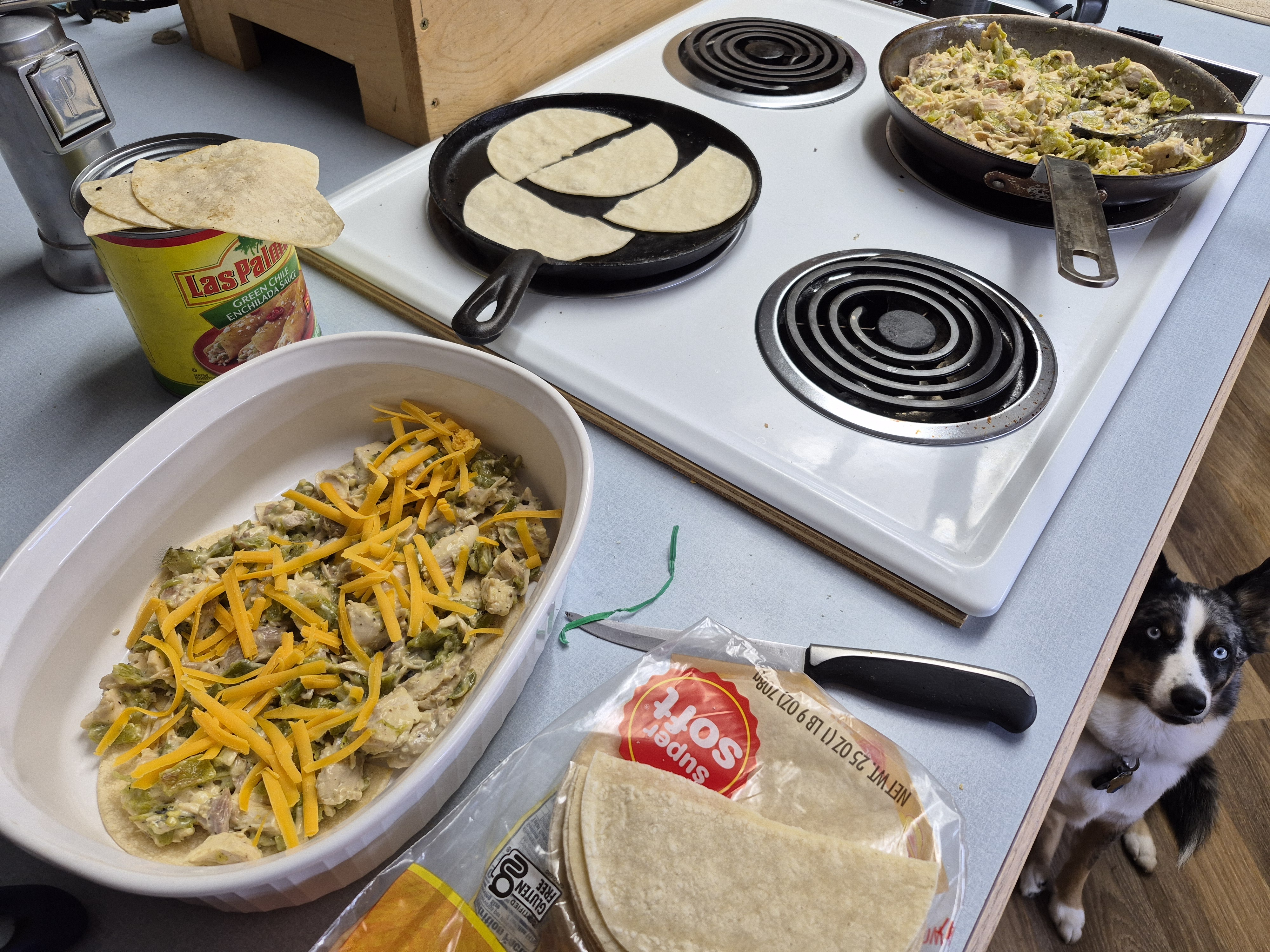 My 20 lb frozen turkey adventure started a week ago. Ended this evening with green chile turkey enchiladas. I'm done with turkey for quite awhile.