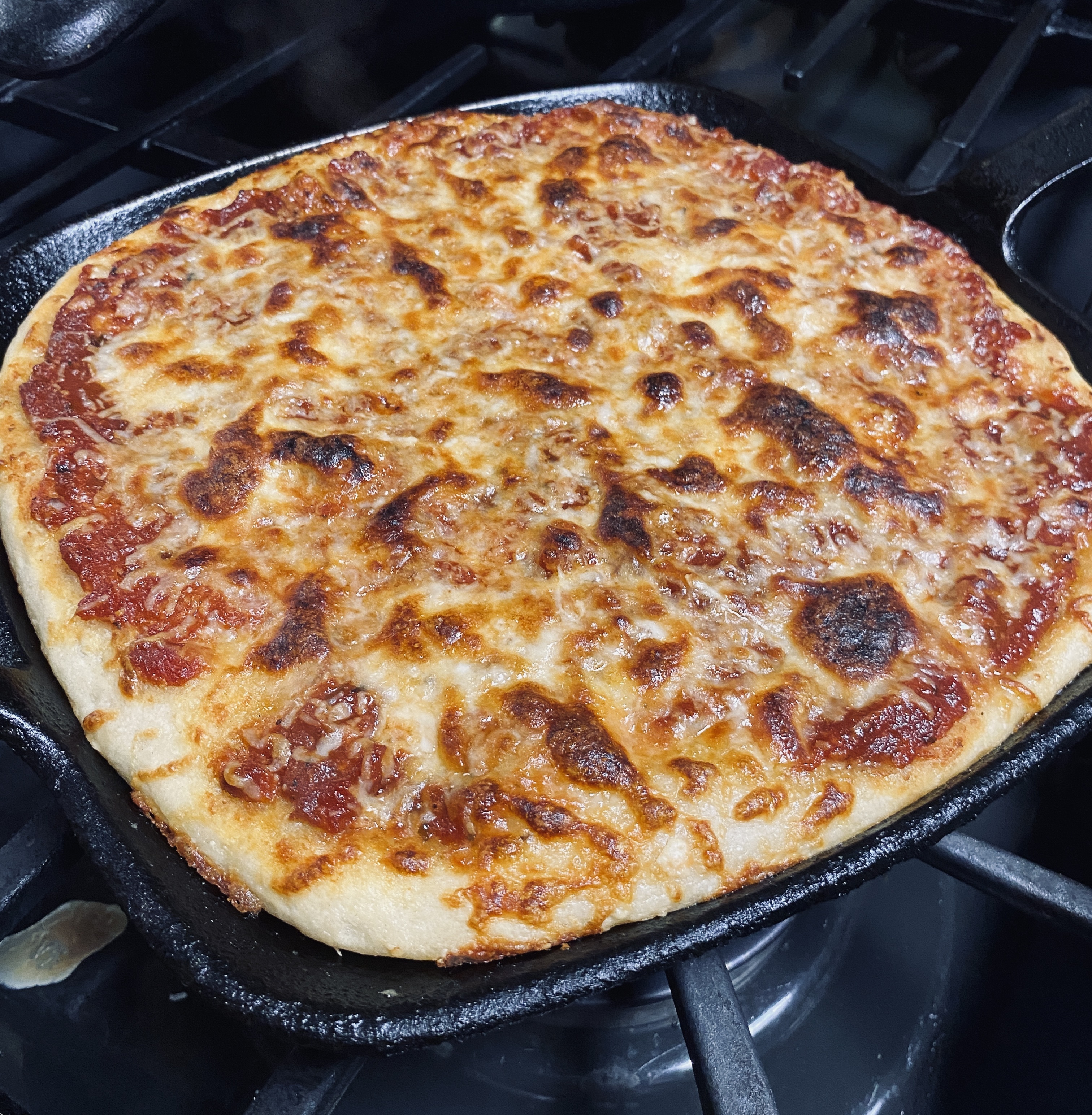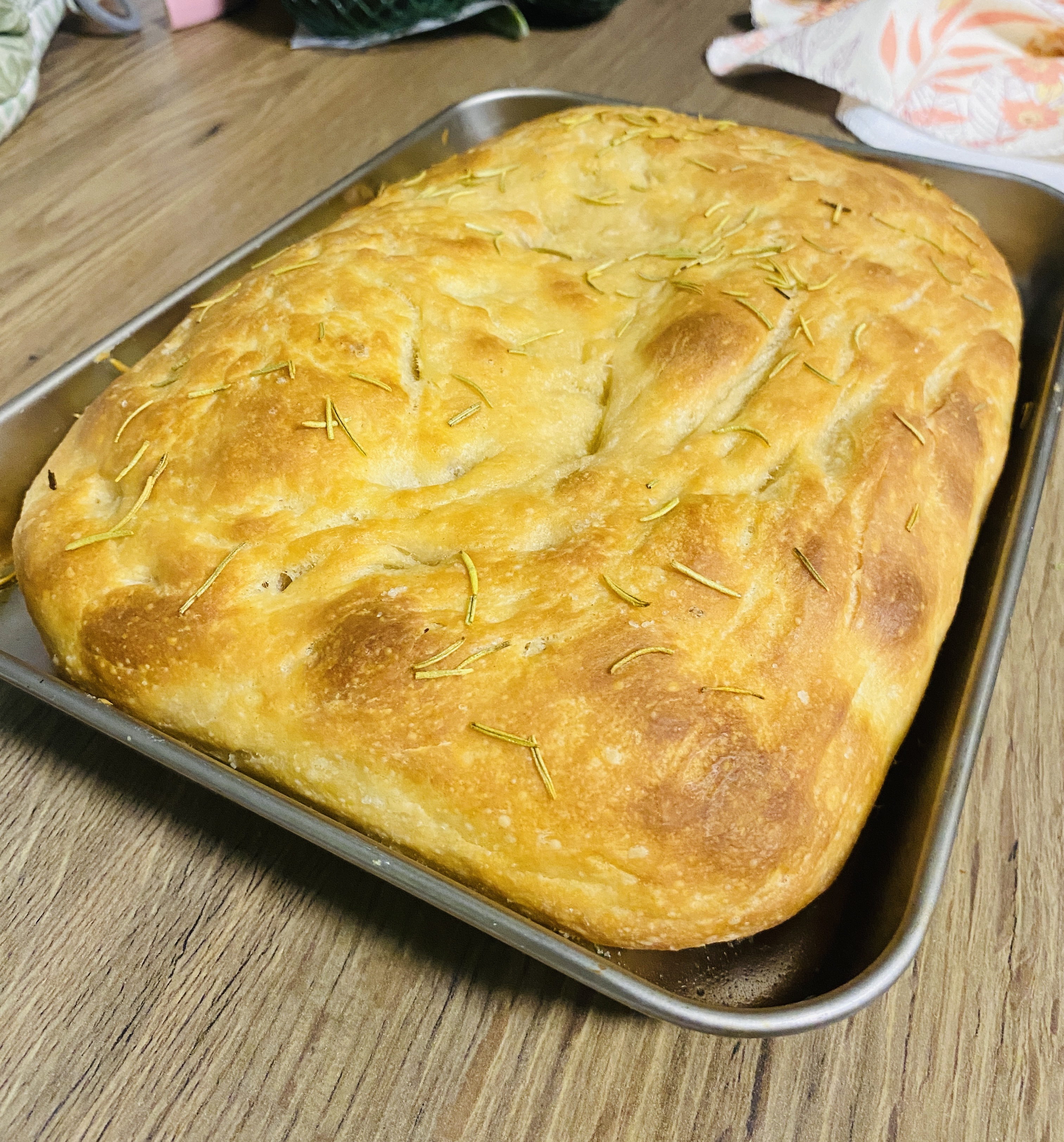 Here’s the first focaccia from my snowed-in dough, and the last of it for pizza tonight. Both turned out really good.