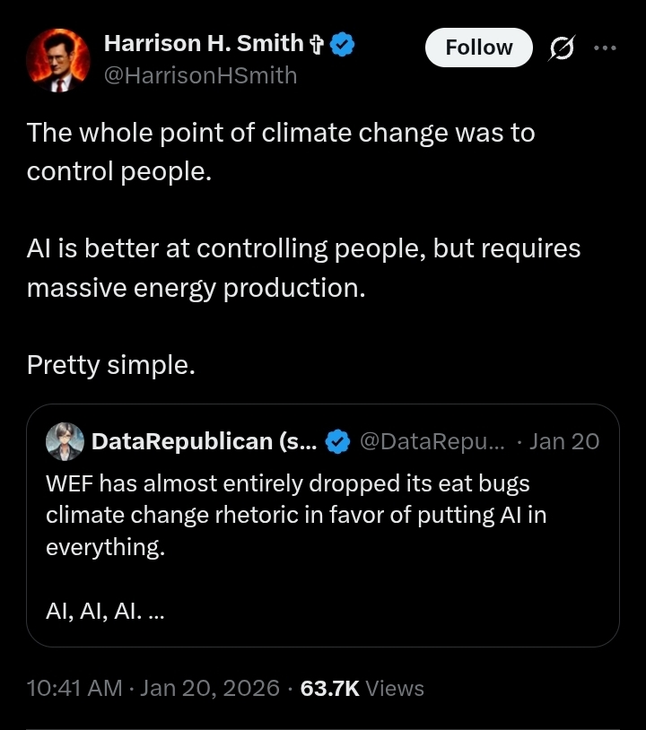 An alternate explanation is that they're no longer emphasizing sustainability and degrowth because they're already convinced it's going to happen. Maybe they're expecting the world's population to collapse, either incidentally or on purpose, so now they're focusing on the next big other thing.